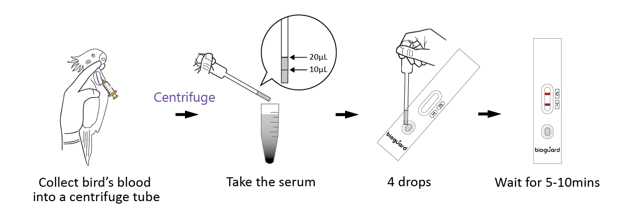 Serum or eyes, trachea, cloacal swab.
